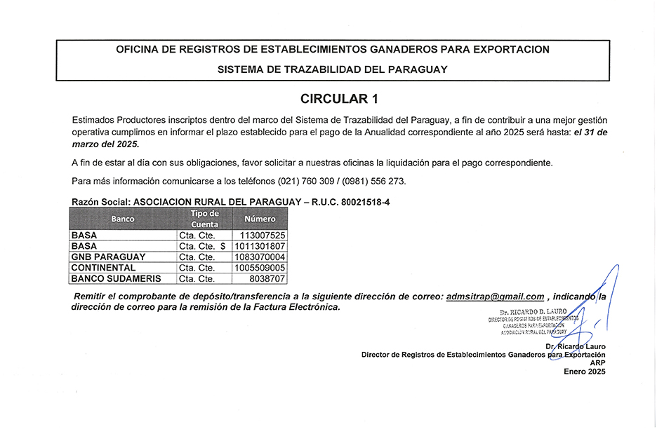 CIRCULAR N° 1