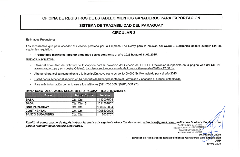Estimados Productores, nos dirigimos a ustedes para informarles.